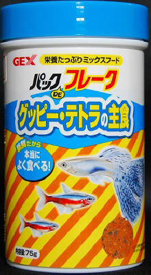 栄養たっぷりミックスフード。小型の魚が一口で効率よく必要な栄養素を取り入れられる。フレークタイプ